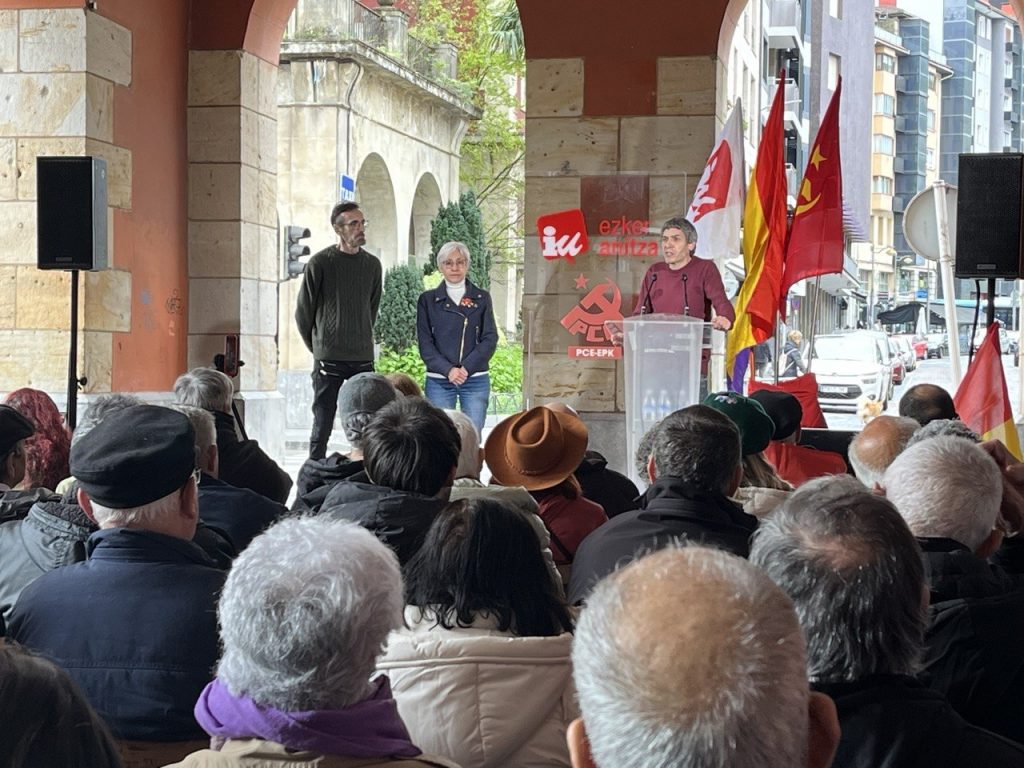 Ekitaldi politikoan, Aranta González García Ezker Anitza-IUko koordinatzaileak eta Jon Hernández Hidalgo PCE-EPKko idazkari nagusiak estatu errepublikar demokratikoa eta baketsua eraikitzearen alde egin dute.