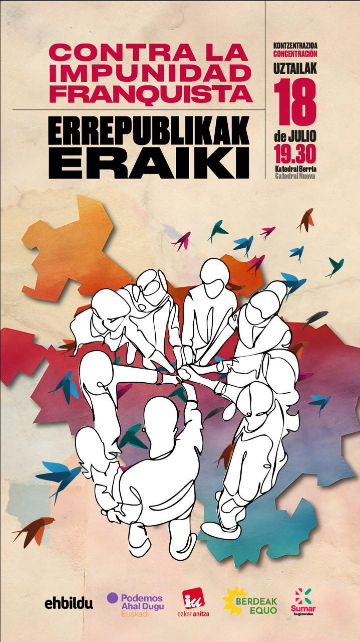 El 18 de julio tendrá lugar una concentración en la Catedral Nueva de Vitoria-Gasteiz, a partir de las 19 horas, para denunciar la impunidad del franquismo y exigir verdad, justicia y reparación para las víctimas del golpe de estado fascista contra la República Española.
