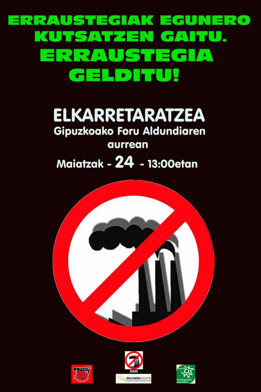 El 24 de mayo a las 13:00 horas habrá una concentración frente a la Diputación Foral de Gipuzkoa para denunciar los problemas de contaminación que genera la incineradora.